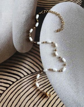 BRACELET CHAINE PERLÉE ACIER INOXYDABLE « BLANC »